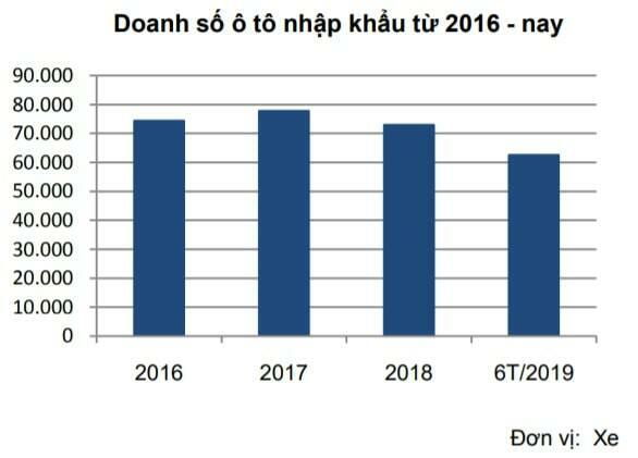 Cụ thể, năm 2016 ở mức 92.440 xe, năm 2017 ở mức 51.950 xe, năm 2018 ở mức 58.417 xe và 6 tháng đầu năm 2019 ở mức 80.345 xe.
