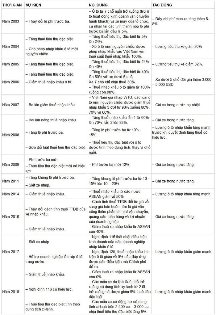 Trước môi trường cạnh tranh cực kỳ gay gắt từ ô tô nhập khẩu, đặc biệt là khi thuế nhập khẩu ô tô từ khu vực ASEAN giảm về 0%, Chính phủ nước nhà đã ban hành một số chính sách nhằm bảo hộ ngành sản xuất và lắp ráp ô tô nội địa.