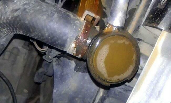 - Thấy dầu bôi trơn trong nước làm mát và ngược lại.