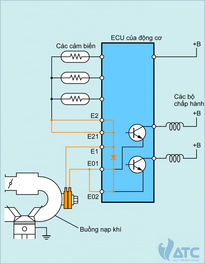 Cực E1 này là cực tiếp mát của ECU động cơ và thường được nối với buồng nạp khí của động cơ.