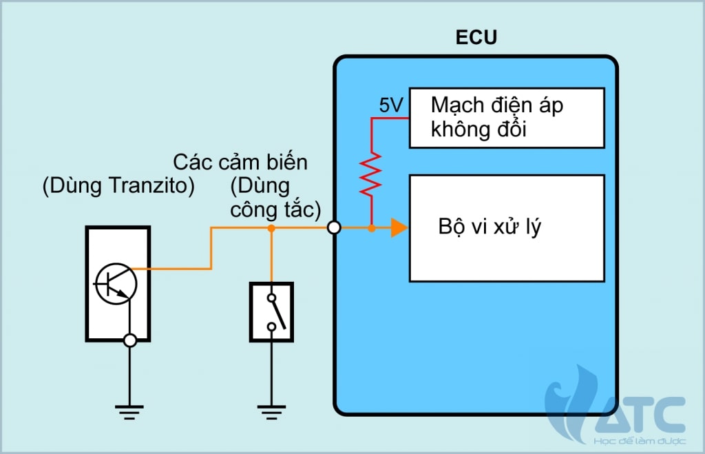 Một điện áp không đổi 5V (Điện áp VC) để điều khiển bộ vi xử lý ở bên trong ECU động cơ bằng điện áp của ắc quy. Điện áp không đổi này, được cung cấp như nguồn điện cho cảm biến, là điện áp cực VC.