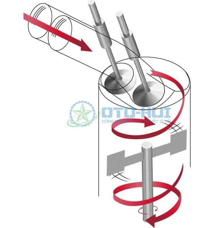 - Khi các phân tử không khí thoát ra, nó sẽ bắt đầu quanh quanh trục vuông góc với trục của xylanh. Sự quay này thường được gọi là hiệu ứng nhào lộn và dẫn tới sự trộn lẫn không khí và nhiên liệu. Điều này sẽ làm ảnh hưởng tới Tumble Flow.