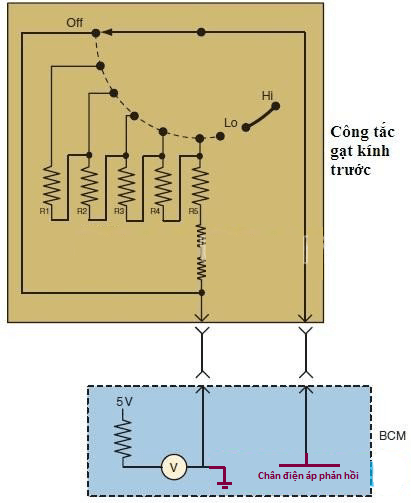 Lúc này một điện trở chẩn đoán sẽ được mắc song song với công tắc sẽ làm cho có ba mức điện áp gửi về ECU.