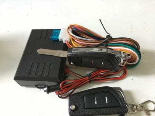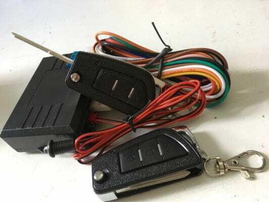 Bộ điều khiển từ xa: Hiện nay, có 2 loại điều khiển từ xa: Loại gắn trực tiếp vào chìa khóa và loại đi kèm với chìa khóa. Khi nhân công tắc khóa thì sóng radio sẽ truyền tín hiệu để điều khiển cửa xe đóng/mở theo ý muốn. Các loại điều khiển này hoạt động nhờ bin Lithium. Các dải tần số radio (tín hiệu) của các nước là không giống nhau, hiện nay, các dải tần số radio nằm vào khoảng 300 – 500 MHZ, còn ở thế hệ trước sẽ rơi vào khoảng 30 – 70MHZ. Đây là bộ phận không thể thiếu trong cấu tạo hệ thống khóa cửa ô tô.