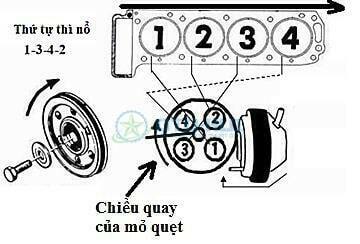 - Với động cơ 4 xi lanh là: 1-3-4-2 hoặc 1-2-4-3.