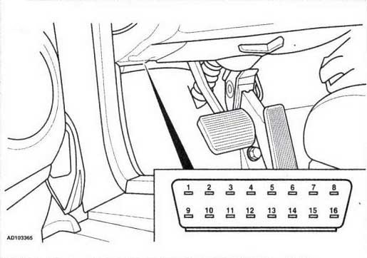 Để xác định được mã lỗi, chúng ta thực hiện kết nối bằng máy chẩn đoán hoặc thiết bị chẩn đoán chuyên hãng với cổng OBD2 của xe. Vị trí của giắc chẩn đoán OBD2 thông thường sẽ nằm ngay cạnh – phía trên bàn đạp ga tô (Như hình dưới).