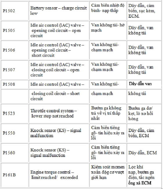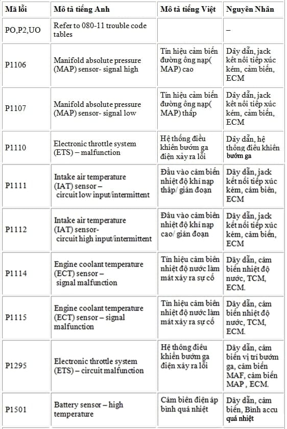>>> Xem thêm bài viết: Mã lỗi ô tô tổng hợp